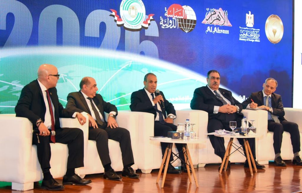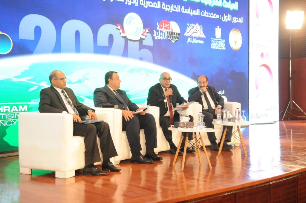 شارك خبراء المركز القومي لدراسات الشرق الأوسط بأوراق علمية في الجلسات كافة، حيث عرض اللواء طارق عبد العظيم رئيس المركز القومي لدراسات الشرق الأوسط نجاحات السياسة الخارجية المصرية واتجاهات التحرك خلال عامي 2025 و2026، وأكد على وجود “تكامل وتناغم مؤسسي” في مجال السياسة الخارجية، من خلال النشاط الواضح والواسع النطاق للسيد الرئيس عبد الفتاح السيسي، والدور المركزي لوزارة الخارجية في تمثيل الدولة وصياغة سياستها الخارجية وتعزيز حضورها في العديد من النطاقات الإقليمية والدولية، وتكامل أدوار وجهود مؤسسة الرئاسة ووزارة الخارجية مع مؤسسات الدولة الأخرى بما في ذلك أجهزة المعلومات، وذلك لتحقيق الهدف الأسمى المتمثل في حماية مصالحنا الوطنية، وحفظ وصون الأمن القومي المصري في النطاقات الاستراتيجية للدولة المصرية.