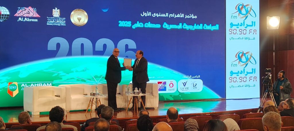 شارك المركز القومي لدراسات الشرق الأوسط في تنظيم مؤتمر الأهرام السنوي الأول حول السياسة الخارجية بعنوان “السياسة الخارجية المصرية.. حصاد عام 2025” الذي عُقد يوم السبت الموافق 17 يناير 2026، وقد جاء تنظيم المؤتمر بشراكة ثلاثية شملت المركز القومي لدراسات الشرق الأوسط ومؤسسة الأهرام ووزارة الخارجية والهجرة وشئون المصريين بالخارج. شارك في المؤتمر وزير الخارجية السيد الدكتور بدر عبد العاطي وعدد من مساعدي وزير الخارجية، والخبراء بمجلتي السياسة الدولية والديمقراطية، ونخبة من المسئولين والخبراء والدبلوماسيين والباحثين المتخصصين في قضايا السياسة الخارجية والتحولات الدولية والإقليمية.