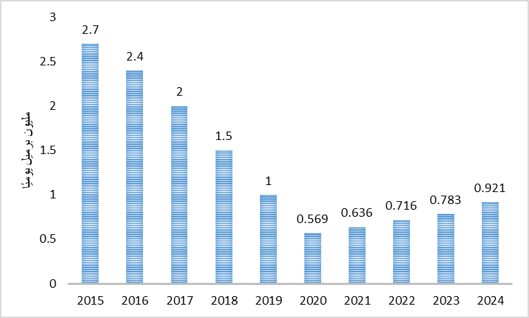 الشكل رقم (1): إنتاج فنزويلا من النفط الخام (مليون برميل يوميًا)