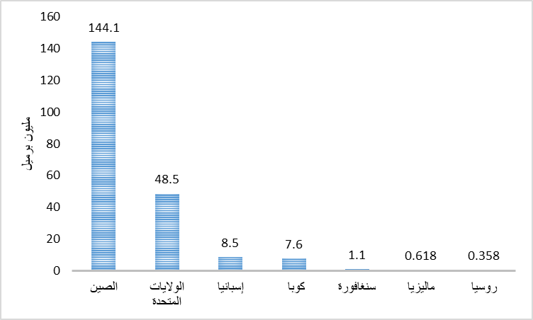الشكل رقم (2): توزيع صادرات النفط الفنزويلي وفقًا للدولة (مليون برميل) – عام 2023